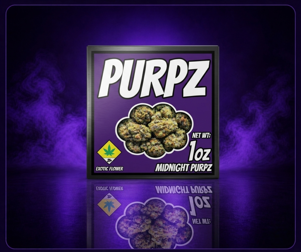 Midnight Purpz is a top-tier exotic flower featuring deep purple tones, dense buds, and premium quality. Perfect for users seeking a smooth and refined experience.